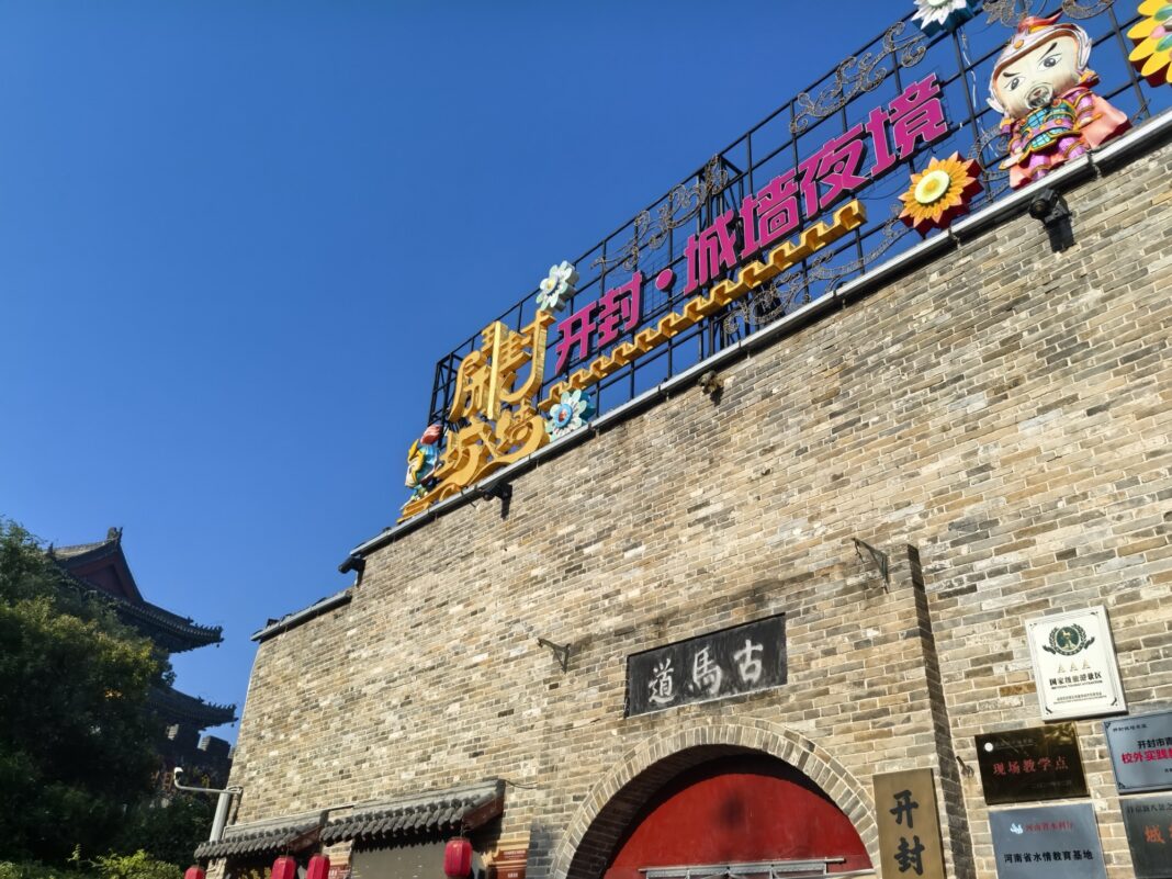 开封地处中原腹地、黄河之滨,千百年来,这座古城兴也黄河、衰也黄河。在位于开封城墙景区的古马道遗址博物馆,该馆通过裸眼的3D动画将城墙楼阁、黄河水患影像投射在遗址立面和古迹地面,生动讲述了开封多次在黄河水患中坍圮又重生的历史。