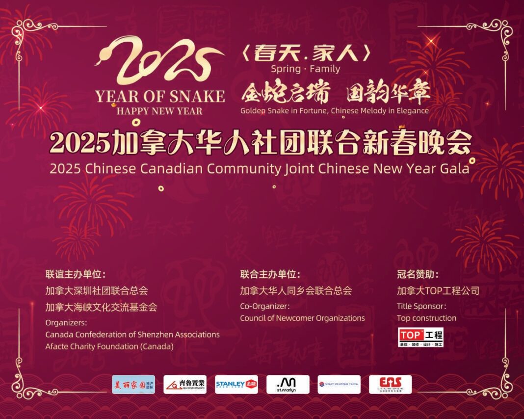 【搜罗网2月7日多伦多讯】由旅居加拿大海峡两岸三地的华人华侨社团联合举办的“春天·家人”2025华人社团联合春晚在多伦多大多伦多文化中心何伯钊剧院圆满落幕。这场春晚汇聚了来自大陆多省份、宝岛台湾、港澳地区的华人华侨艺术达人和多伦多本地华人青少年,通过音乐、舞蹈、戏剧、朗诵等艺术形式,展现了中华文化的深厚底蕴与青春风采,赢得了现场观众的高度赞誉。