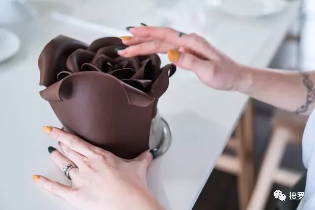 你说它是巧克力?它是且不仅是;你说它是玫瑰花?它是且不仅是;你说它是蛋糕?它是且不仅是。若真要给它一个定义,它是世上最严谨的法式甜点,细腻绵柔,回味悠长。始于颜值,陷于味道,终于品质。选用比利时进口纯可可脂巧克力,通过70.5%可可含量的苦甜巧克力与53.7%可可含量的牛奶巧克力调制出58%可可含量的巧克力。经过严格的温度控制,制作成具有延展性的巧克力皮,味道香浓,口感醇厚,不甜不涩。7层花瓣共19块巧克力皮,每一块的厚度都要精准的控制在2mm,经过手工切割、捏塑、组装、调整,才能最终呈现出最无可挑剔的玫瑰花型。