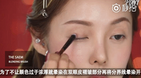 然后找一把干净的刷子,把分界线晕染模糊,这个简单好看的眼影就画好啦!