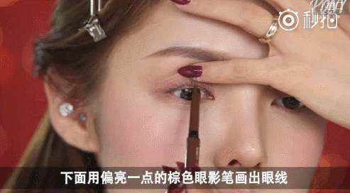 眼线部分选择棕色更柔和!内眼线可以放大双眼。