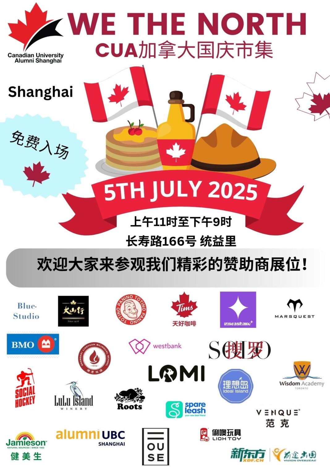 【搜罗上海7月1日讯】记者从上海加拿大大学校友会(CUA)获悉,其主办的 “We The North ”加拿大国庆市集即将开启。活动内容丰富,极具加拿大特色。