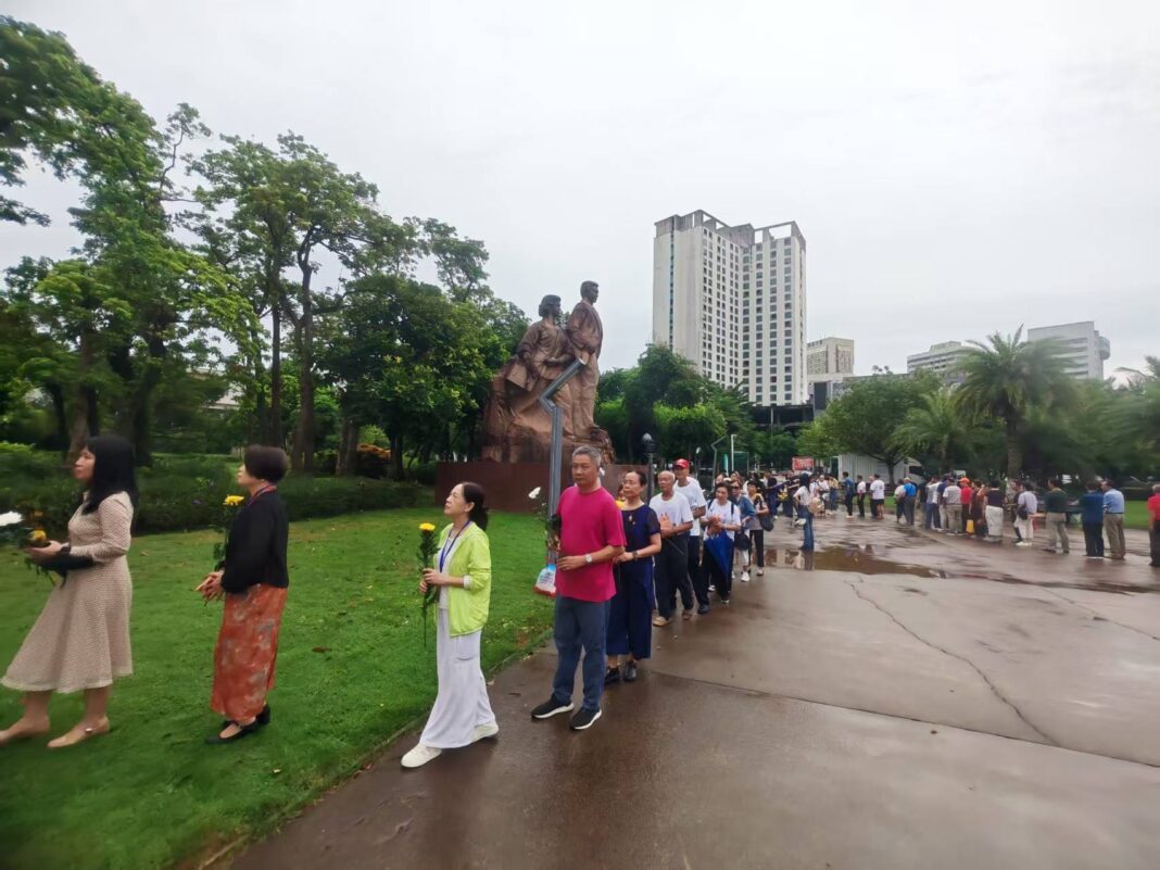 采访活动伊始,海外华文媒体采访团便与省政协港澳台侨外事委、省侨联、海口市侨联全体党员干部,以及部分南侨机工后人一道,来到南侨机工和琼侨归国服务团雕像前,共同向雕像敬献鲜花。洁白的鲜花寄托着对侨界先烈的深切缅怀,也传递着对那段烽火岁月的敬意。