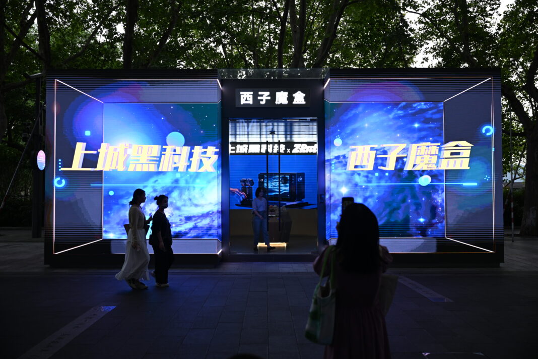 除了“西子魔盒”,街区还集结了“一键退税”、多语种AI透明屏、无人值守快闪店-银河太空舱、滨次元中心站、AI丝巾定制、AI试妆……当下的湖滨步行街已然升级为“黑科技首发街区+具身智能训练场”。