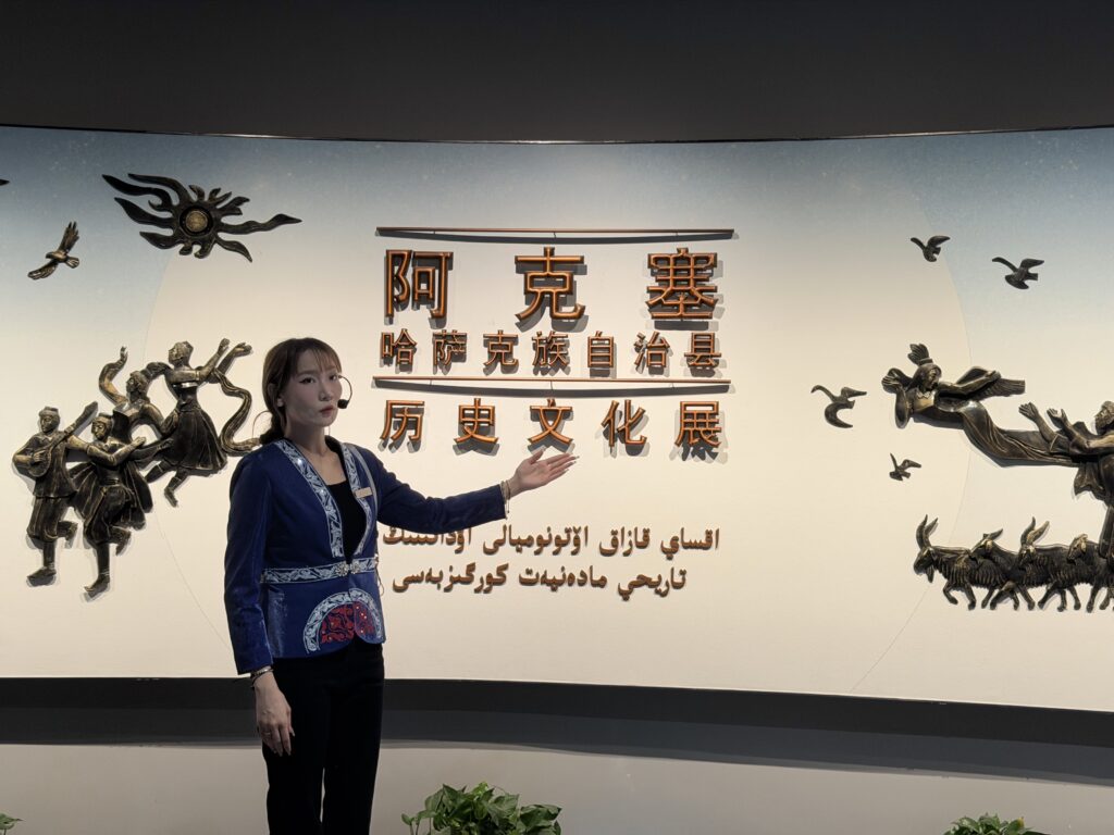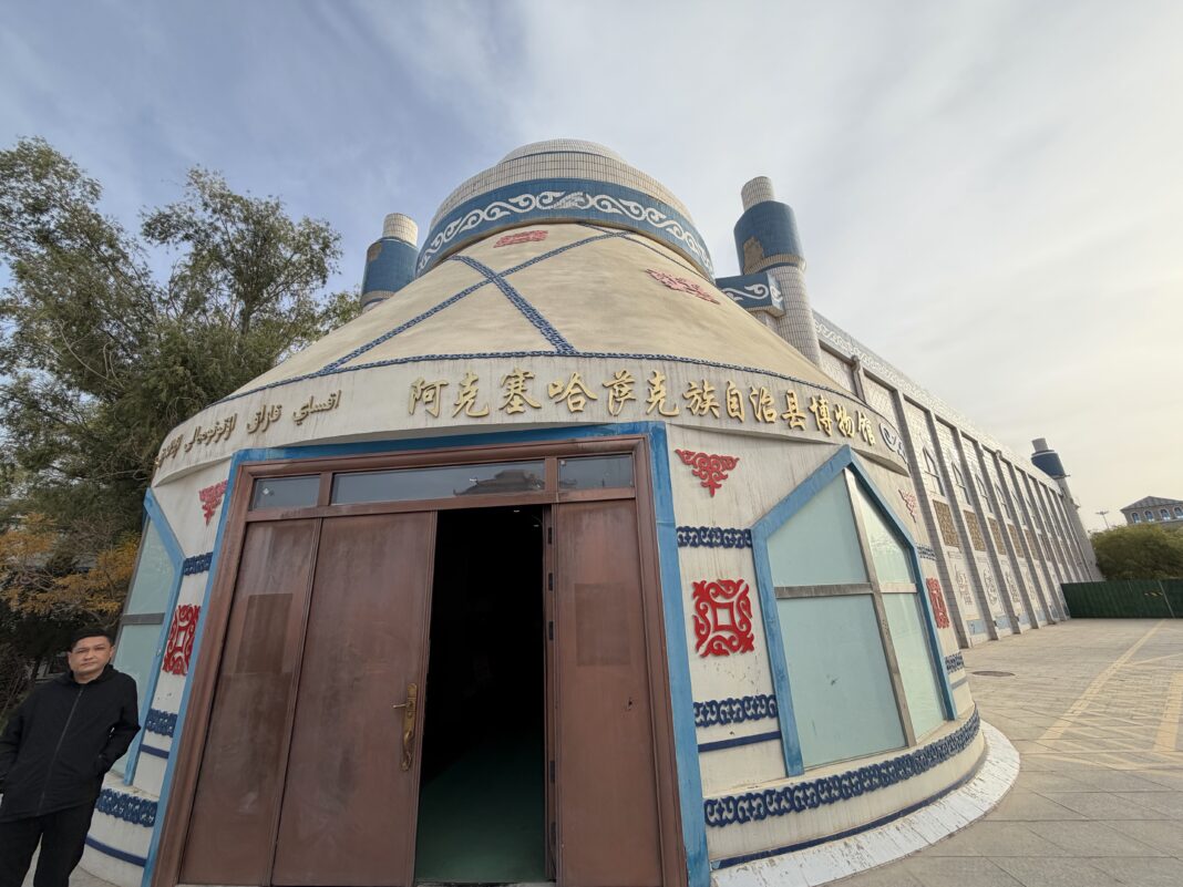 在祁连山南麓的阿克塞风情园内,一座兼具西域雄风与现代设计的建筑静静矗立,这便是集民族文化与自然生态于一体的阿克塞哈萨克族民族博物馆。这座建筑面积达4238平方米的展馆,以1700余件文物藏品为密钥,解锁着草原文明的千年密码。