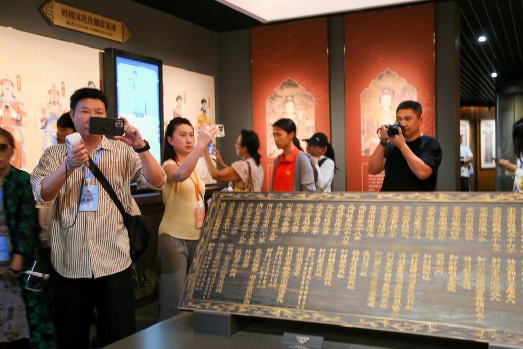 如果说天妃故里遗址公园让代表们触摸到了妈祖文化的起源,那么妈祖源流博物馆则为他们打开了理解这一文化的历史纵深。这座拥有 7 个主题展厅的博物馆,通过 400 余件珍贵文物、三维动画等多元展示形式,系统且完整地呈现了妈祖文化从 “诞降行善” 到 “四海共仰” 的发展脉络。步入序厅,一尊 3.23 米高的汉白玉妈祖雕像庄严肃穆,令人心生敬畏;馆内珍藏的清代《天后圣迹图》以及与郑和下西洋相关的文物,有力印证了妈祖文化与海上丝绸之路的深厚历史渊源;而 3D 影像还原的妈祖巡安东南亚场景,更以直观、生动的方式,让代表们真切感受到妈祖文化跨越山海、向外传播的壮阔历程。
