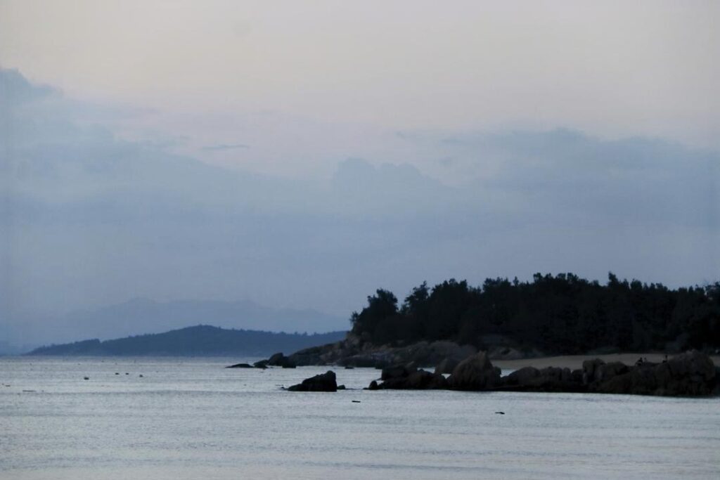 在网红打卡点“鹅尾夕岸”,虽当日落日被云层轻掩,少了“熔金铺海”的璀璨盛况,却为这片海岸赋予别样朦胧诗意。米金色的石英砂沙滩踩上去松软如棉,海浪轻拍岸滩发出柔和声响,咸湿海风拂面而过;落日余晖透过云隙洒向海面,化作细碎银红斑驳的光影,远处礁石群在暮色中宛如水墨画般意境悠远,“云锁斜阳”的景致引得代表们纷纷驻足拍摄。大家或漫步沙滩、或交流见闻,用镜头记录这份独特的自然之美。