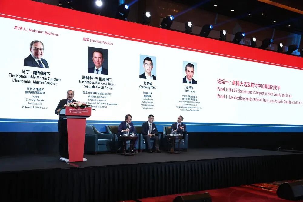 回顾上一届活动,第46届加中贸易理事会年度大会商务晚宴于2024年11月15日成功举办,汇聚了众多政企界重量级嘉宾。其中,加中贸易理事会主席向峰(Graham Shantz)、原住民液化天然气联盟首席执行官卡伦·奥根(Karen Ogen)、深科咨询管理(深圳)有限公司创始人兼首席执行官舒婷(Mary Shu)等出席并参与讨论,马丁·酷尚阁下(The Honourable Martin Cauchon)、斯科特·布里森阁下(The Honourable Scott Brison)等行业精英围绕“美国大选及其对中加两国的影响”等热点议题展开深度研讨,为双边合作建言献策。
