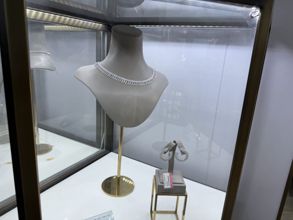 活动现场,培育钻石展台是核心参访区域。展台内,“HUAJEW华晶”品牌的培育钻石饰品整齐陈列,灯光下,钻戒、吊坠等成品折射出璀璨光泽,引得女性媒体代表纷纷驻足。有人凑近展台细察钻石的切工与光泽,有人拿起展台上的图文资料翻阅,更多人围在工作人员身旁提问。“我们拥有多项自主知识产权,工业金刚石和培育钻石产能均位居行业第一梯队,从毛坯生产到成品切磨,裸石培育到个性定制,再到后期品牌打造,全流程实现自主把控,产品质量有坚实保障。”工作人员耐心回应着媒体代表的疑问。