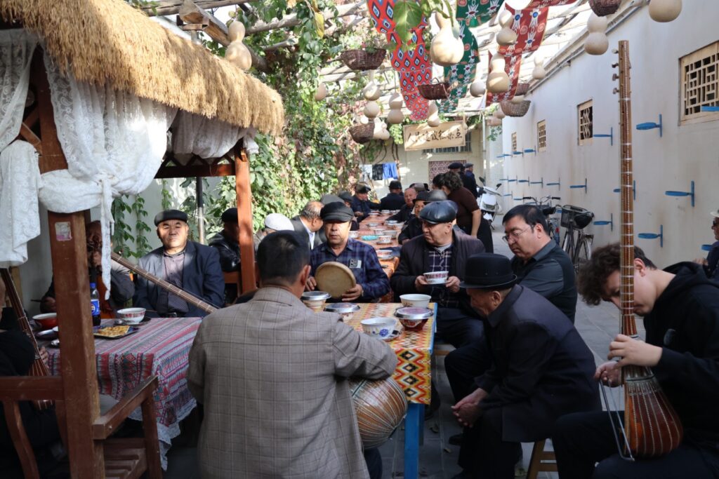 离开遗址博物馆,步入库车老城的龟兹小巷,另一番热闹景象映入眼帘。作为晚清和民国初期街巷格局保存最完整的街区,这里的每一条小巷都蜿蜒曲折,每一座老宅都独具风情:土黄色的墙体承载着岁月痕迹,雕花的木门彰显着民族特色,葡萄架下的藤椅透着闲适安然。如今的龟兹小巷,早已不是单纯的历史街区,而是传统文化与现代生活无缝衔接的“网红打卡地”:老民居改造的特色民宿里,游客可以体验民族风情;手工酸奶店、非遗手工艺品店与时尚咖啡馆、文创小店相邻而居,传统技艺与现代潮流在此碰撞;每逢节庆,小巷里还会举办民族歌舞表演、手工技艺展示等活动,让游客在烟火气中感受库车的民族风情与发展活力。