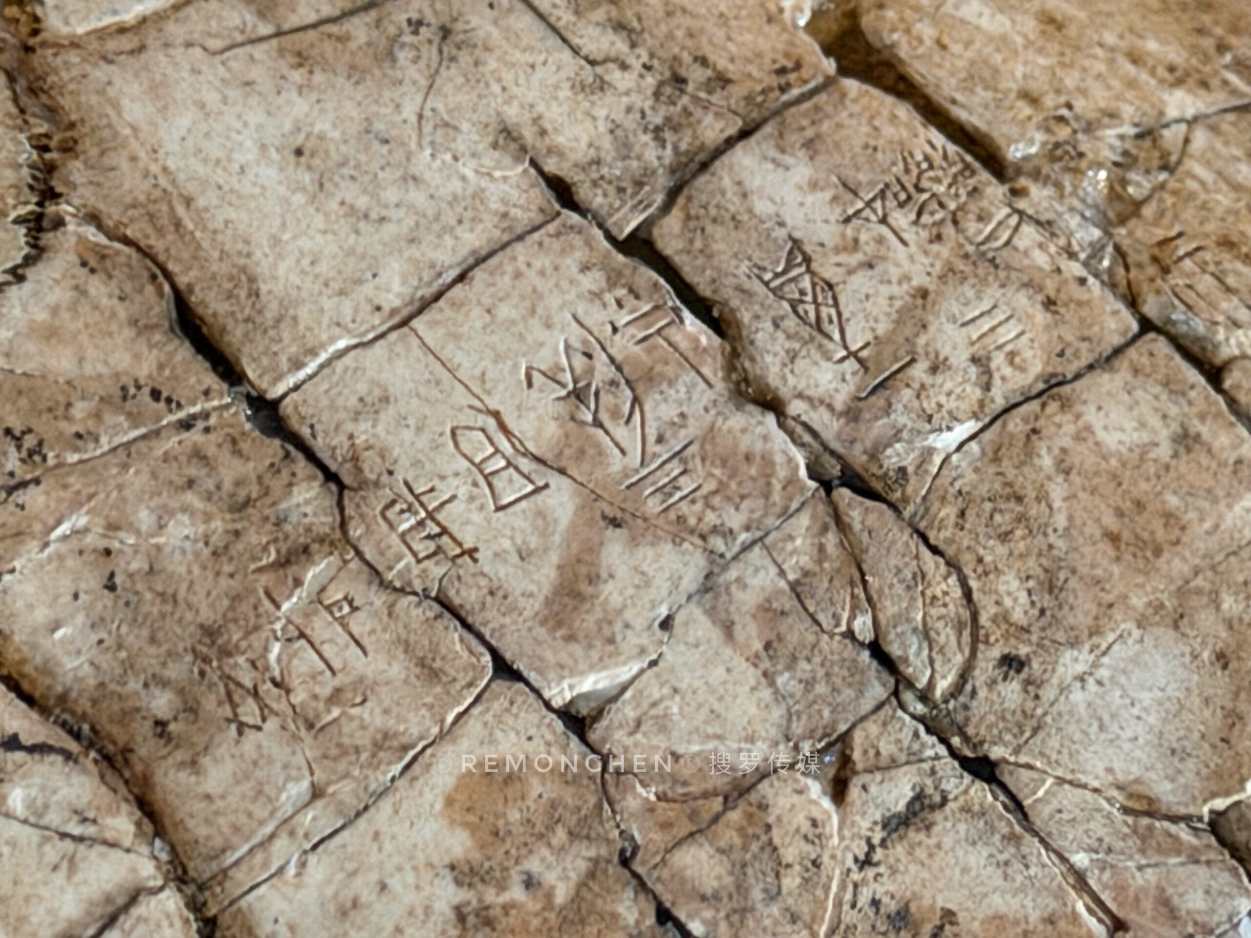 甲骨展区堪称“文化浓度超标”。一片片龟甲兽骨上刻满了神秘符号,这些符号正是世界上最古老的文字之一——甲骨文。媒体成员们凑近展柜,仔细端详这些刻辞,倾听着讲解员解读甲骨文背后的故事,直观感受殷商的政治、经济与生活。大家一边听一边拍,生怕错过这些“活历史”。行至博物馆三层,亚长牛尊、青铜手型器等“网红文物”随即亮相,独特造型格外吸睛,引众人驻足合照。