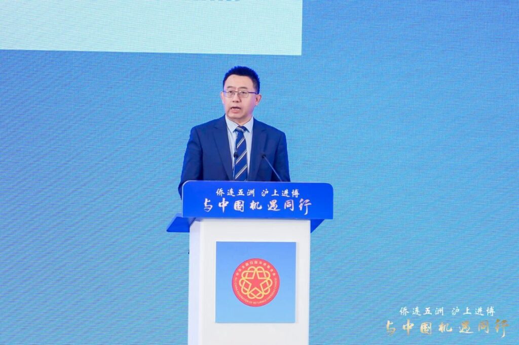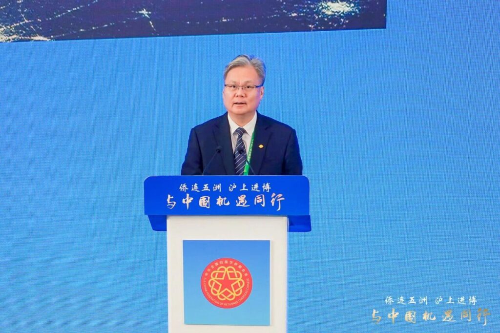 11月7日上午,2025“侨连五洲·沪上进博——与中国机遇同行”主题活动在国家会展中心(上海)举行。本次活动由中国侨联主办,上海市政府侨办、上海市侨联承办。中国侨联党组成员、副主席高峰,上海市委常委、上海海外联谊会会长陈通出席并致辞。作为第八届中国国际进口博览会现场配套活动之一,来自近70个国家和地区的200余位侨领、华商和专业人士代表出席活动。