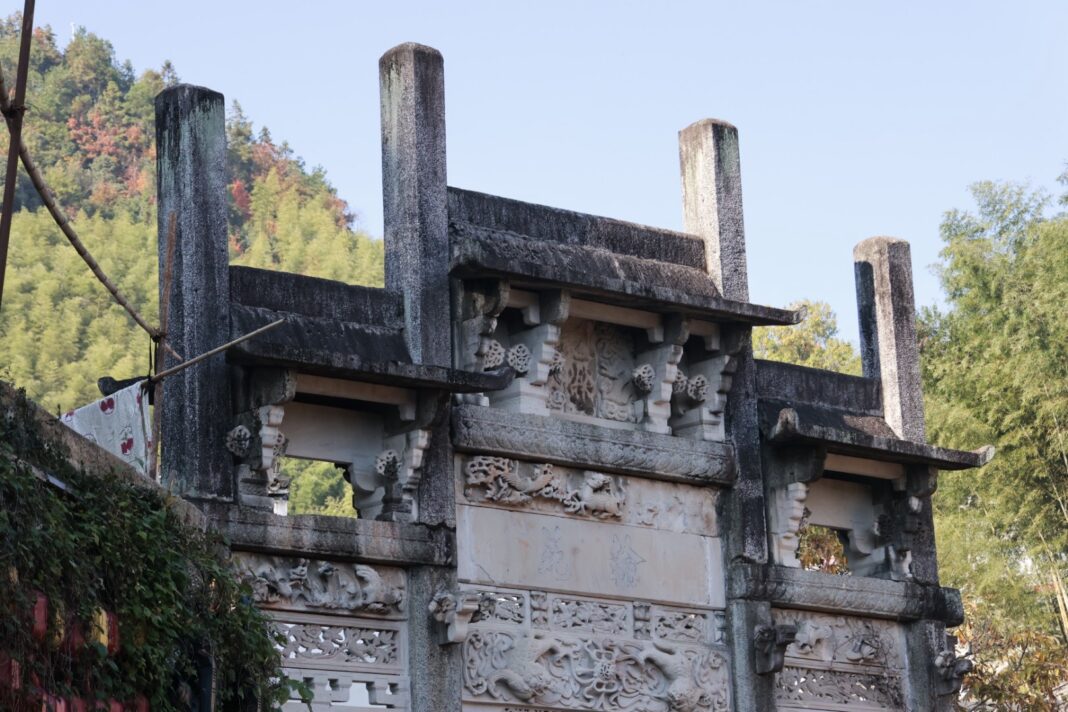 黄山灵山村古建筑群:位于黄山市徽州区呈坎镇,是后唐时建村的古建筑群,为徽州方氏主要聚落居村之一,现为安徽省级文物保护单位。这里有明清古建筑40余处,含重点保护古建筑7处,包括村南水口古建筑翰苑坊、天尊阁、灵阳桥、五福庙4处,明代祠堂1处,清代民居建筑2处。(摄影 陈林)