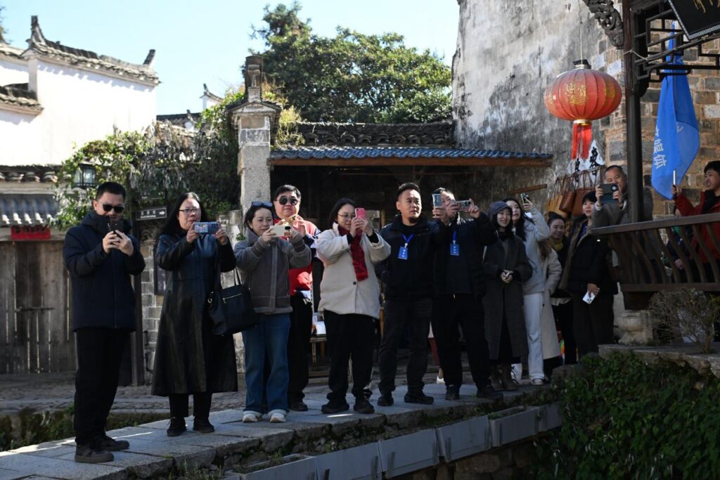 (华文媒体代表在查济古村拍摄取景。韩苏原 摄)