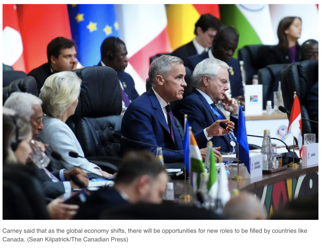 卡尼指出,未来一个世纪的全球经济将从“资本与权力集中”转向“能量与影响力的分散化”,这将为像加拿大这样的中等国家提供更多在多边机制中发挥作用的空间。