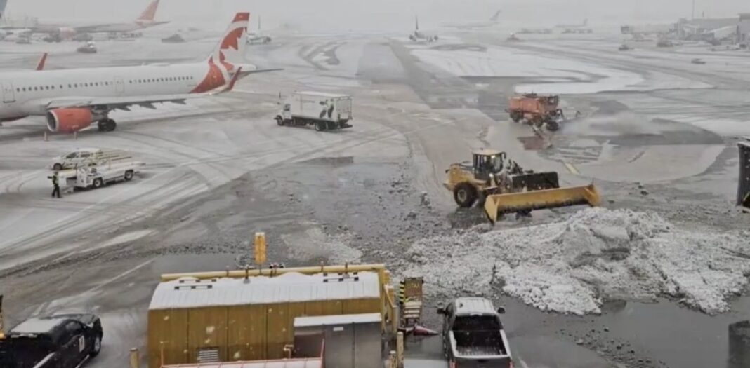多伦多暴雪肆虐 皮尔逊机场清理8万吨积雪 保持航班运行