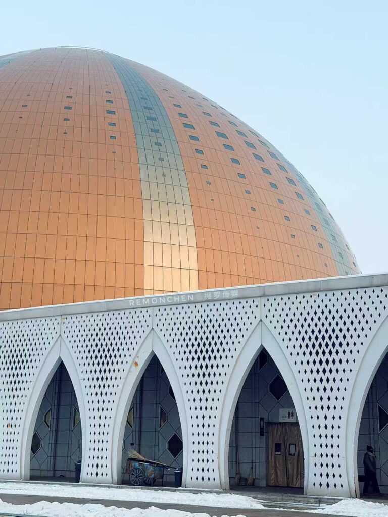 2024年5月1日晚,坐落于昌吉市乌伊东路999号头屯河西岸的新疆大剧院内灯火璀璨、座无虚席。这座以“天山雪莲”为设计原型的丝路文化地标,在暮色中宛如一朵含苞欲放的圣洁之花,外层黄褐色金属铝板构成的花瓣式穹顶与内核金色砖纹肌理的椭球形穹窿交相辉映,56个象征56个民族大团结的拱券火焰门流光溢彩,迎接阔别1460余天的大型室内实景民族歌舞秀《千回西域》成功复演。全场2100余名观众在此沉浸式感受穿越千年丝路的视听盛宴,见证自治区及昌吉州党委、政府高位推动文旅融合发展的重要成果。