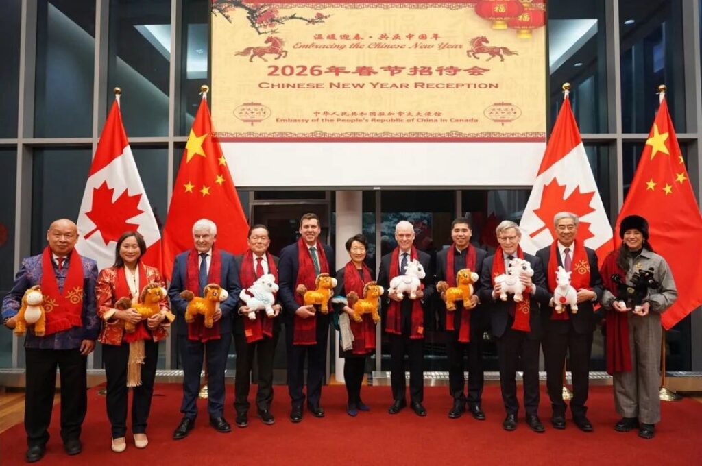 2月10日渥太华讯,中国驻加拿大使馆隆重举办“温暖迎春·共庆中国年”2026年春节招待会。加外交部副部长莫里森、总理驻议会秘书布洛伊斯、参议员吉尼亚克、众议员罗耶、前参议员胡子修等10余名政府高官和参众议员及在加华侨华人、中资机构、留学生代表等约200人出席。