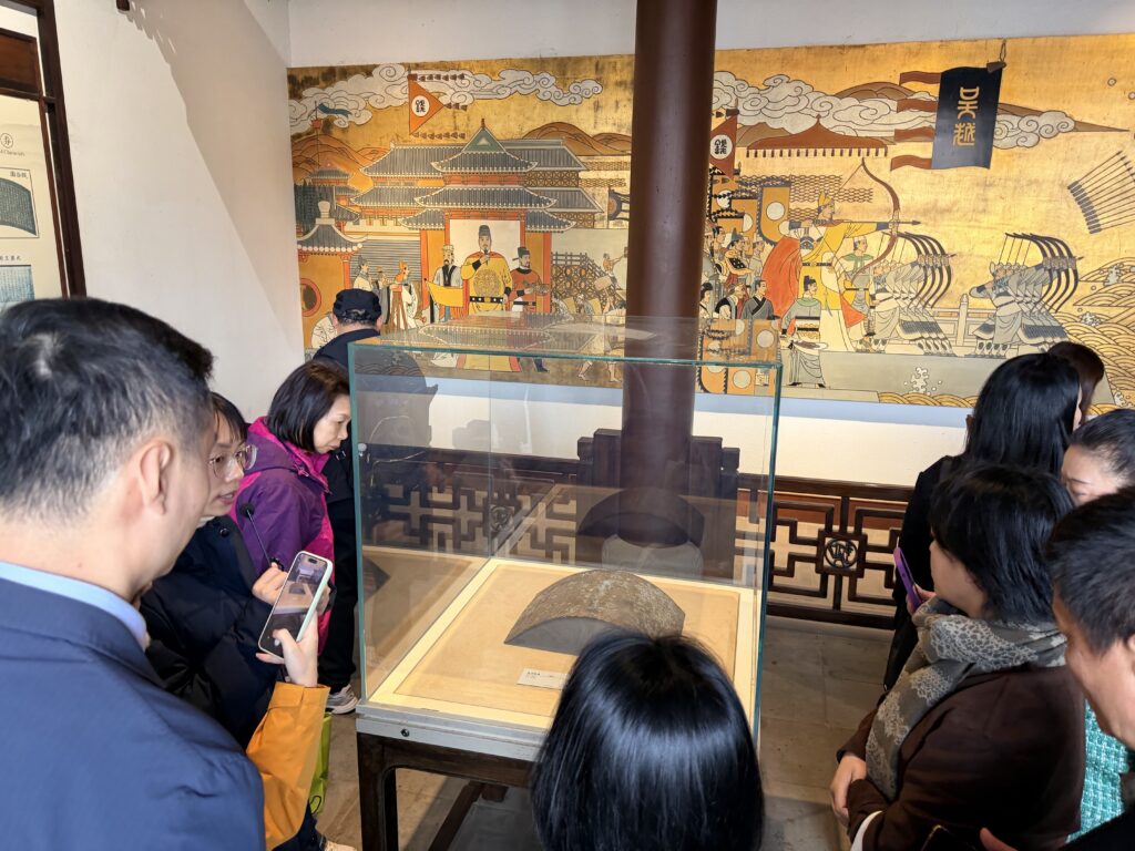 祠内碑廊墨香萦绕,镌刻于石的《钱氏家训》引得代表们纷纷驻足品读、拍照记录。“利在一身勿谋也,利在天下必谋之”“心术不可得罪于天地,言行皆当无愧于圣贤”,这些字字珠玑的家训,从个人、家庭、社会、国家四个层面构建起处世治家的准则,既是钱氏家族千年长盛、人才辈出的密码,更是中华民族优秀传统文化的生动诠释。这部由钱镠遗训提炼完善而来的家训,历经千年仍焕发着鲜活的时代价值,不仅滋养着一代代后人,更成为江浙地区文化精神的重要组成部分,让海外华媒直观感受到中华家训文化的深厚底蕴与传承力量。而钱镠与发妻吴氏“陌上花开,可缓缓归矣”的温情典故,也让代表们看到了这位乱世君主的柔软一面,感受到吴越文化中刚柔并济的独特魅力。