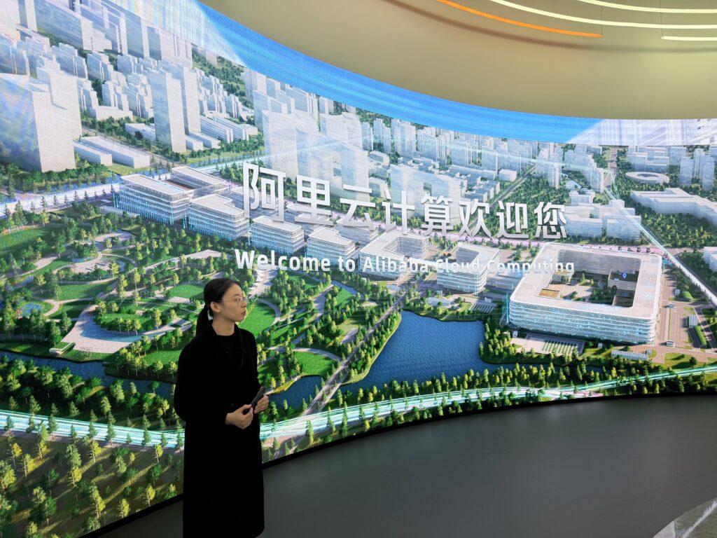 告别西湖大学的学术殿堂,媒体团来到余杭未来科技城的阿里巴巴集团总部,感受数字科技应用的广度、速度与温度。如果说西湖大学代表着中国科创向深而行的执着,阿里巴巴则诠释了数字技术向广而兴的活力,二者构成杭州科创发展的双极,让基础科研的成果在数字经济的沃土上开花结果。在这里,从电商交易的全球布局到云计算算力的硬核输出,从达摩院深耕的AI大模型研发到智慧物流的无人车应用,一系列前沿科技场景让媒体人目不暇接。阿里云服务全球数百万客户,在亚太、欧洲等地设立的数据中心,让海外华媒直观感受到“中国技术出海”的强劲势头。