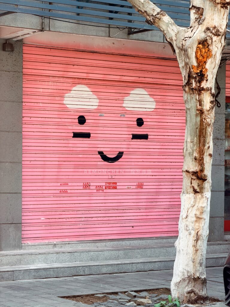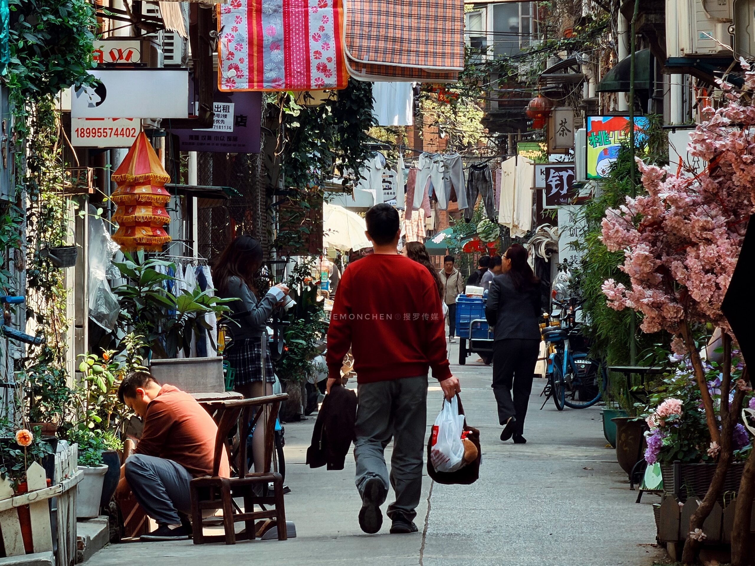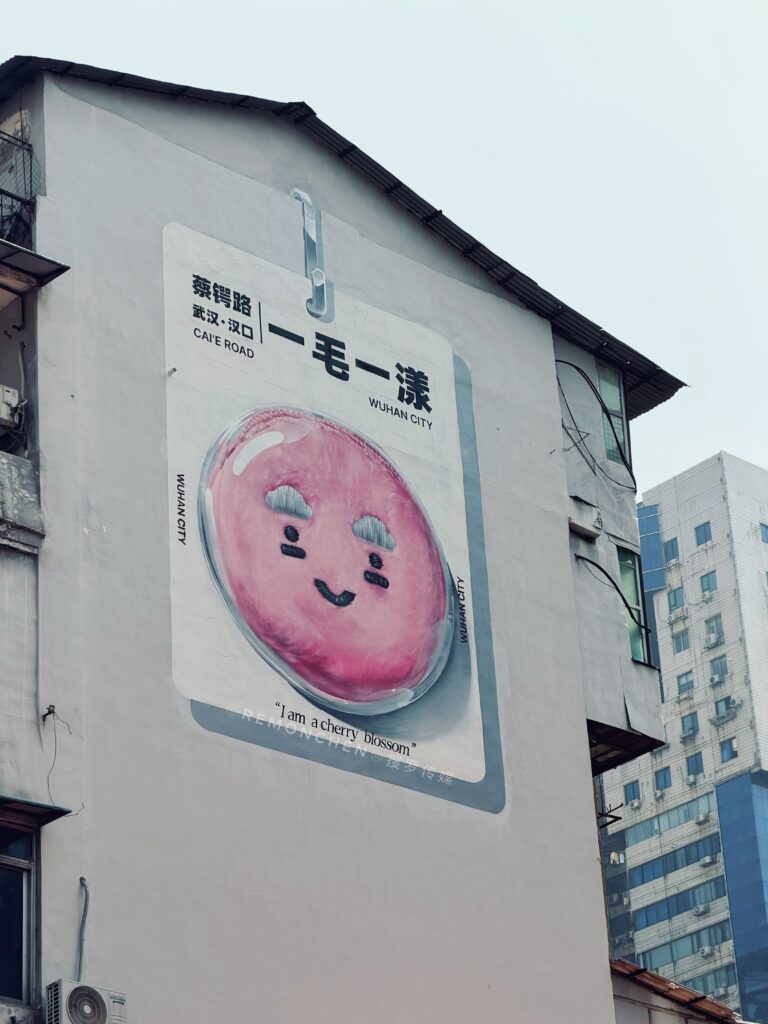 午饭后,从蔡锷路一路晃到泰兴里,阳光懒洋洋的晒在大街小巷,一栋老楼墙上软萌的“一毛一漾”樱花涂鸦,让我的心情也跟着美好,把老汉口的文艺浪漫拉满;我开始留意每走几步,你都会看到快乐的因素,比如街边挂着笑脸毛衣,涂成粉色带着笑脸的卷闸门,电动车上写满开心的挡风布…当我看到“心情不错”情绪花园小店时,又看到写着“试试吧”的外贸服饰小店,真的是感受到市井里的松弛感揉进日常;这一刻青石板路被阳光晒得暖融融的,老墙爬着绿植,门口摆着盆栽,电线在头顶织成网,连风都慢了下来。