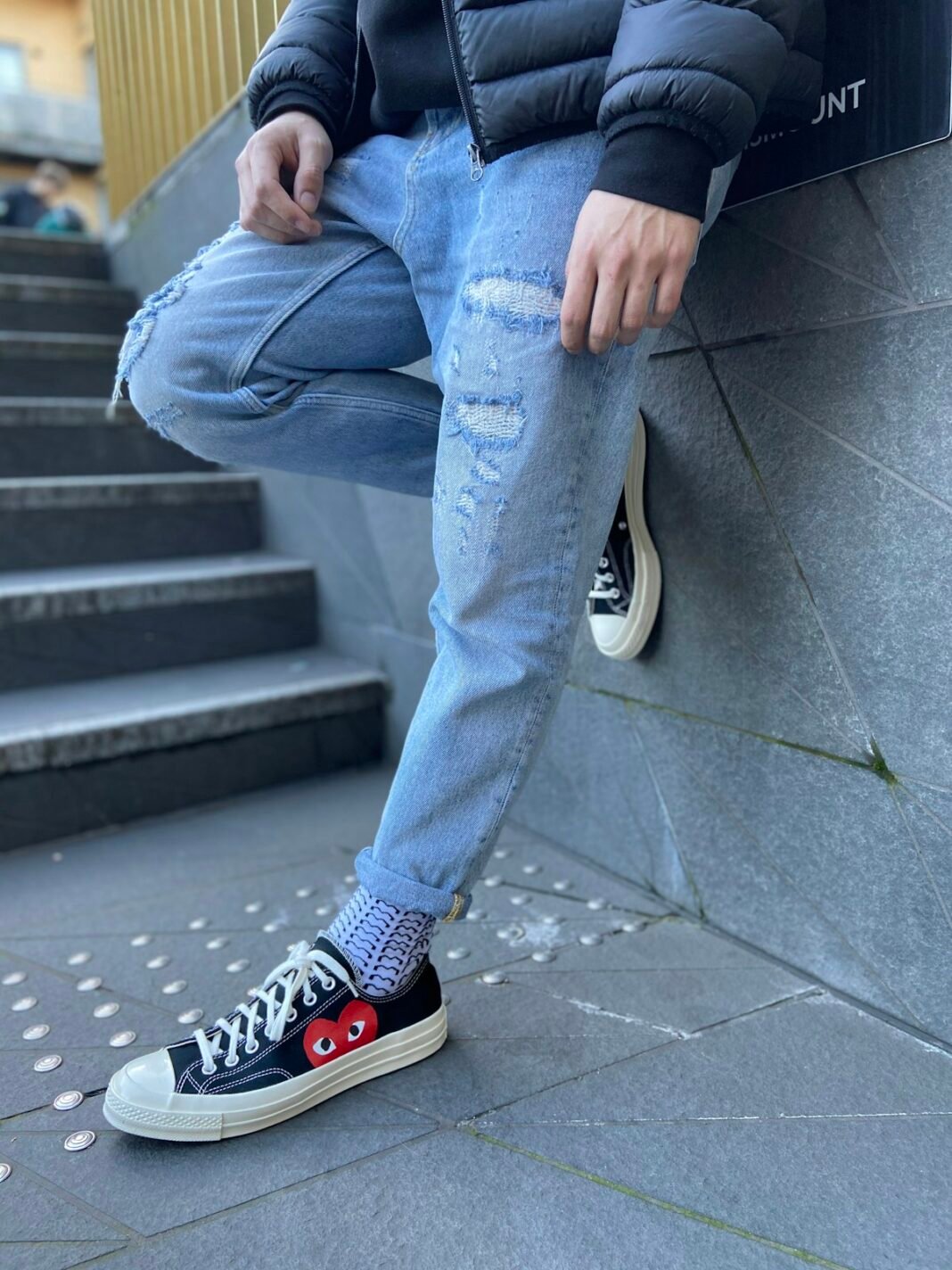 该系列每件牛仔单品均由65%再生棉和35%回收棉(来自库存面料碎片)混纺制成。面料随后在意大利通过专利的Smart-Indigo无化学技术染色,该技术利用电力将靛蓝粉末转化为液体染料。