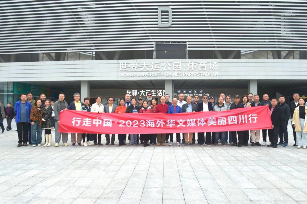10月19日, “行走中国·2023海外华文媒体美丽四川行”活动走进成都市,来自美国、加拿大、意大利、哈萨克斯坦等22个国家和地区的41家海外华文媒体实地探访了成都大运会博物馆,近距离感受大运会的魅力。此次参访活动是第十一届世界华文传媒论坛的配套活动,由四川省人民政府侨务办公室和中国新闻社四川分社共同组织。