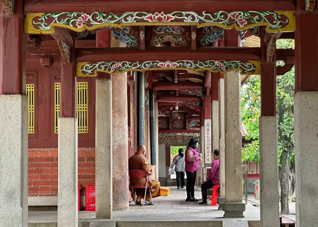 拜庭两旁古榕参天,大雄宝殿雕塑技术高超,尤其是粱槽间的24尊飞天乐伎,在中国国内古建筑中罕见。殿前月台须弥座的72幅狮身人面青石浮雕,殿后廊的两根古婆罗门教青石柱,同为明代修殿时从已毁的元代古印度教寺移来。大殿内用近一百根海棠式巨型石柱支撑殿堂,俗称“百柱殿”,殿内供奉的五方佛像,法相庄严,是汉地少有的密宗轨制。大雄宝殿之后的甘露戒坛,系中国现存三大戒坛之一,坛之四周立柱斗拱和铺作间的24尊木雕飞天。