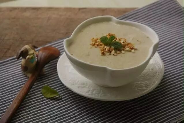 ❸ 倒入煮好的燕麦牛奶,用料理棒打到自己喜欢的细腻程度即可。