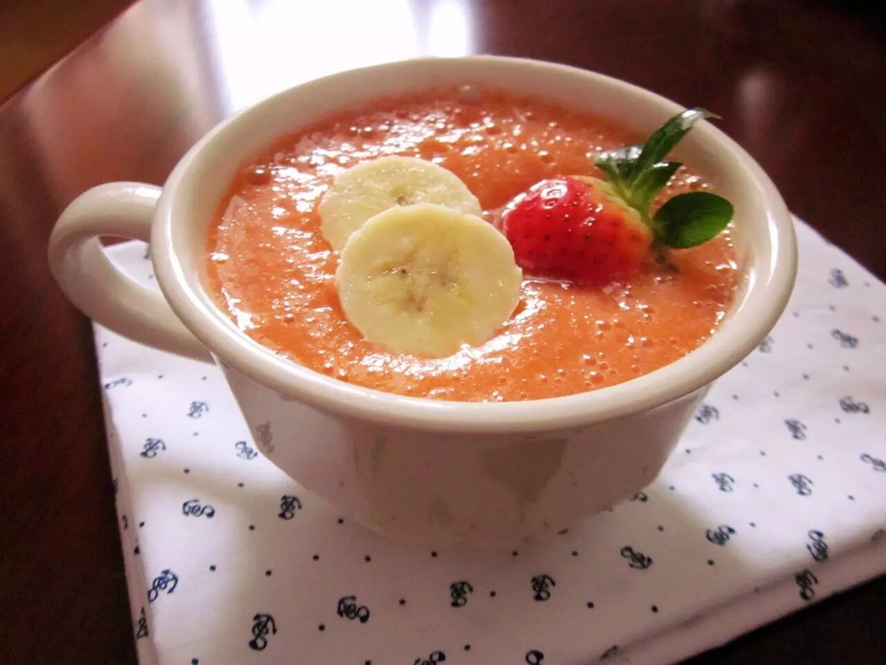 ❸ 胡萝卜、香蕉和酸奶一起丢进料理机,打碎!!