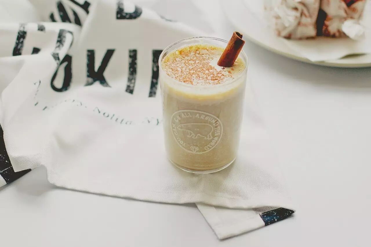 ❸ 装入杯中,撒少许肉桂粉装饰即可。