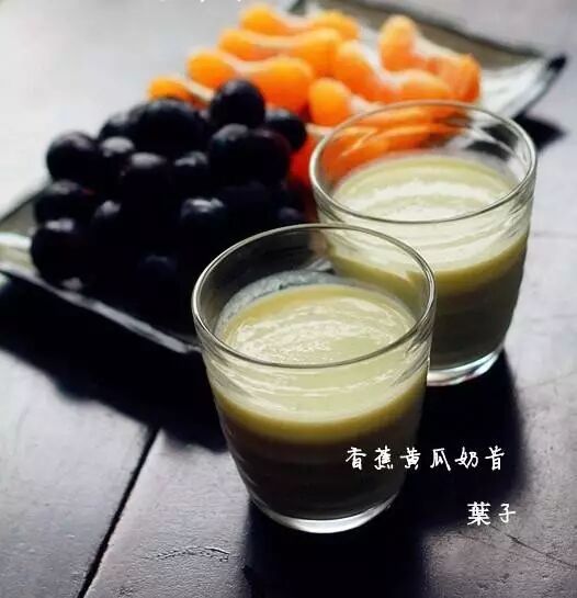 ❸ 把牛奶,纯净水,香蕉和黄瓜放入豆浆机(或者料理机),按“果汁”功能键。搞定。